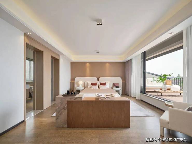 三开间双卧朝南,明厨明卫,横跨客厅和次卧的双面宽阳台,舒适又大气!主、次卧分散在客厅两侧,这样的布局方式让主卧区域的私密性得到了明显提高。