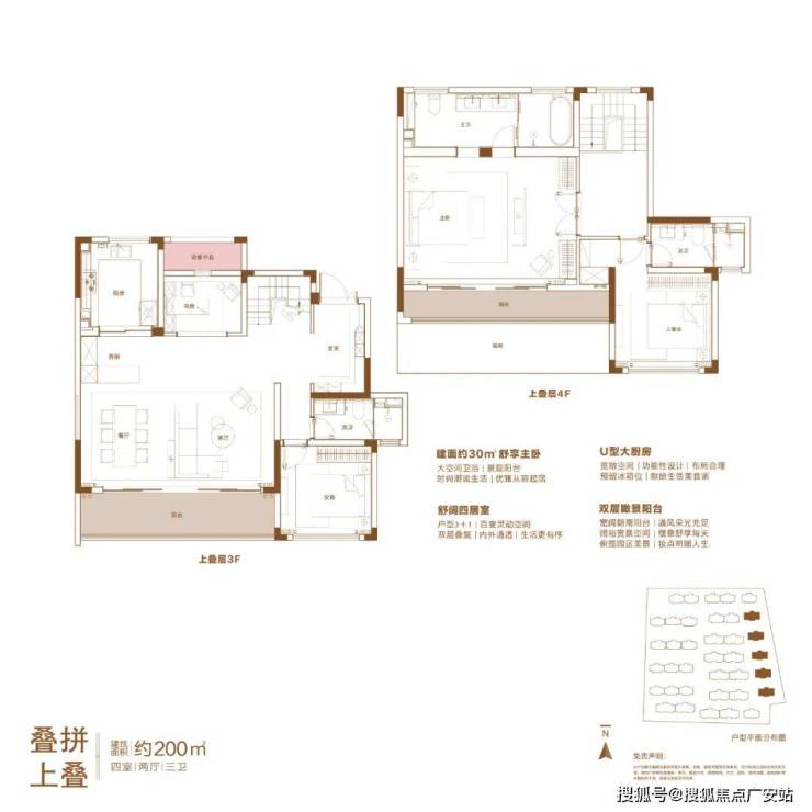 |建筑面积约200㎡4房2厅3卫上叠户型
