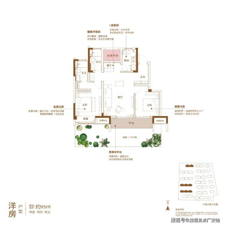|建面约95㎡2房2厅2卫户型