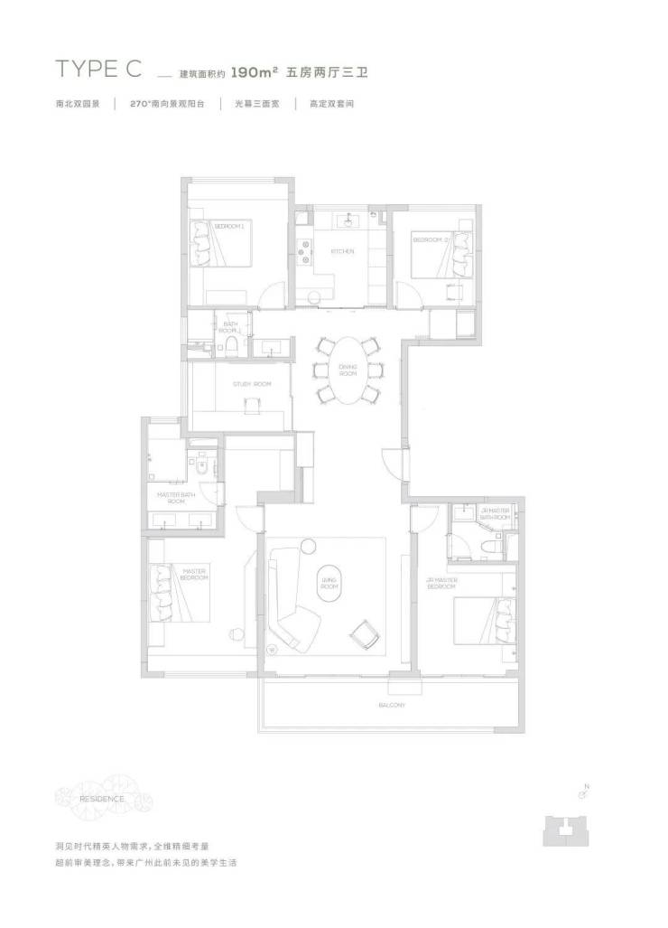 【190㎡户型】南北双园景-光幕三面宽-270度超广角观景视野-经典四叶草布局