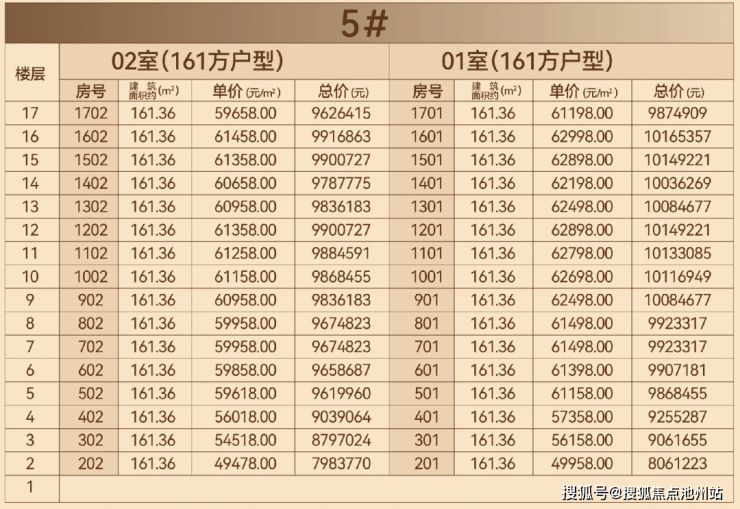 ③5#东边套161方,项目所有161方户型中景观面最好的,故定价略贵;