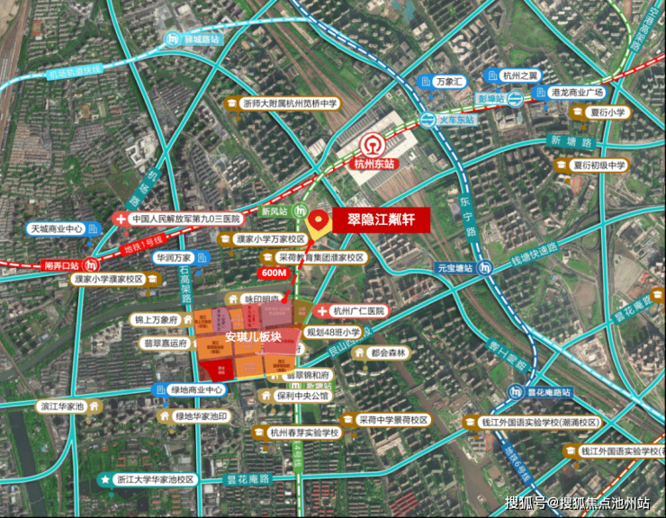 通过区位图就可以看出,翠隐江粼距离安琪儿板块直线距离约600米,目前,安琪儿高层最低定价是7.5万/m²,虽说都大板块都属于城东新城,但是小板块略有区别,但是目前客户直观感受板块差距不大。
