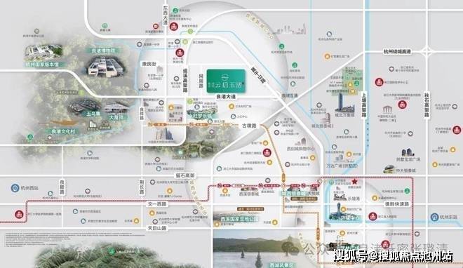 项目西邻良渚文化村(大屋顶、玉鸟集旁),占据板块内优越位置,坐拥水到渠成的醇熟生活配套,出门就是繁华场,近距离享受良渚文化村所有内部、外部配套。