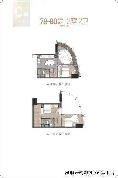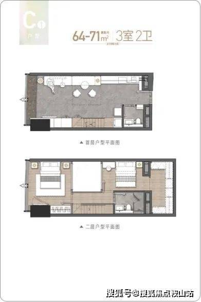 产品类型:48-115㎡复式(1-5房)C塔的loft产品6梯24户;107-350m²平层