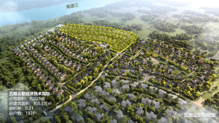 二、五期·云墅G5地块概况【经济技术指标】※占地面积:约225亩※土地性质:城镇住宅用地※五期总户数:197席※总建筑面积:约5.3万㎡※绿地率:45%※容积率:0.21※物业费:4.5元/平方米·月※交付标准:毛坯※车位数:每户均配有私家车位