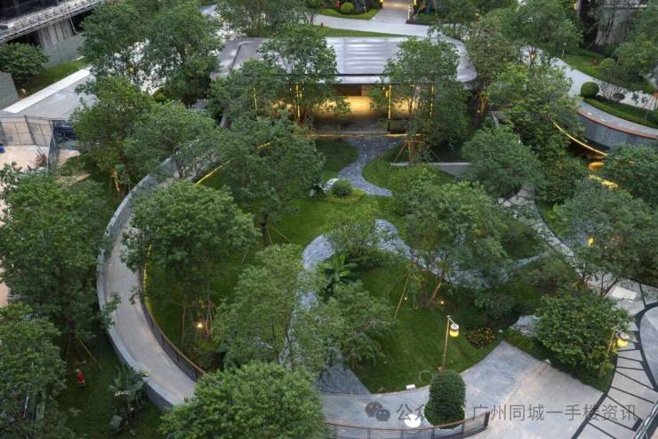 天河源筑不同,它选择用一个节点集中拆解,就如下图,项目凭借地势,打造了一座双层立体花园,手法大胆而新颖。