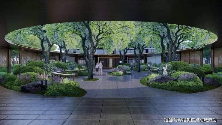 从会所式社区入口到归家大堂,归家风雨连廊连贯其中,于自然草木更迭之间,开启遮风避雨的无忧归家之旅