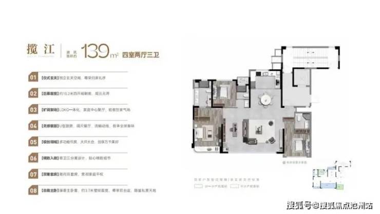 建面约139㎡户型,南向面宽达到约15.2米,直接越级至温州少有的大平层格局。更大空间自然就有更多的功能选择和更体面的待人接物的排场,对于好客的温州人而言很是重要。