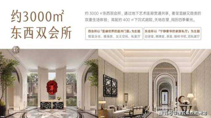 温州首个双奢华会所,远超市场普遍规格。西会所设有主题接待厅、健身区、大私宴厅、泳池、庭院等,而东会所更显私享功能:咖啡书吧、桌球室、小私宴厅、品茶室、棋牌室等,满足随时随地的个性需求。