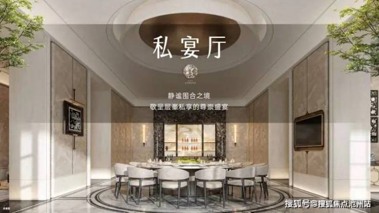 在大私宴厅可以进行商务接洽,或者进行宴席款待,一边谈天说地,一边欣赏窗外庭院的美景,业主可以在此体验到前所未有的生活品质与格调。