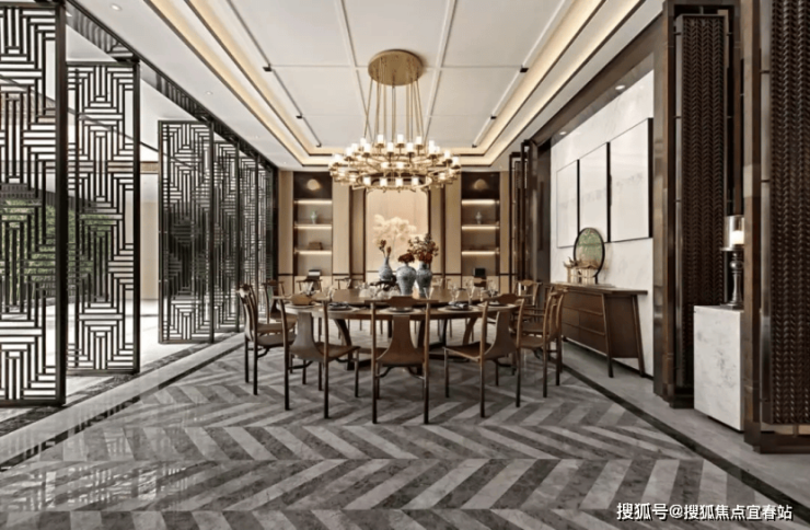 负二层空间可打造成私家宴会厅,设有可容纳高达18人的中心聚会餐厅,餐客通厅大气岿然,无论是家人欢享还是招待宾朋,皆显赫端仪,写照着主人的阔达心境。同时配备中西式厨房,保姆房,私人酒窖,品酒区、健身区、容纳2-3台车的宽阔地下车库一应俱全。并且宴会厅与庭院中间设置5扇开敞通透的的中式屏门,使得宴会厅与中心庭院融为一体,一边享受宴会的雅致,一边欣赏庭院美景,别有一番风味。