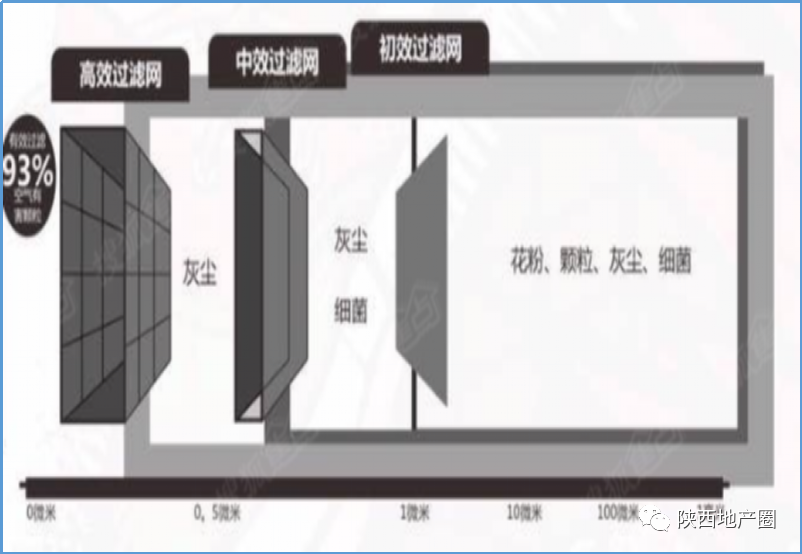 (4)置换式新风系统:采用吊顶式置换式新风热回收机组,热回收机组吊装于各户阳台吊顶内,内设可过滤粒径2.5μm粉尘颗粒的过滤段。