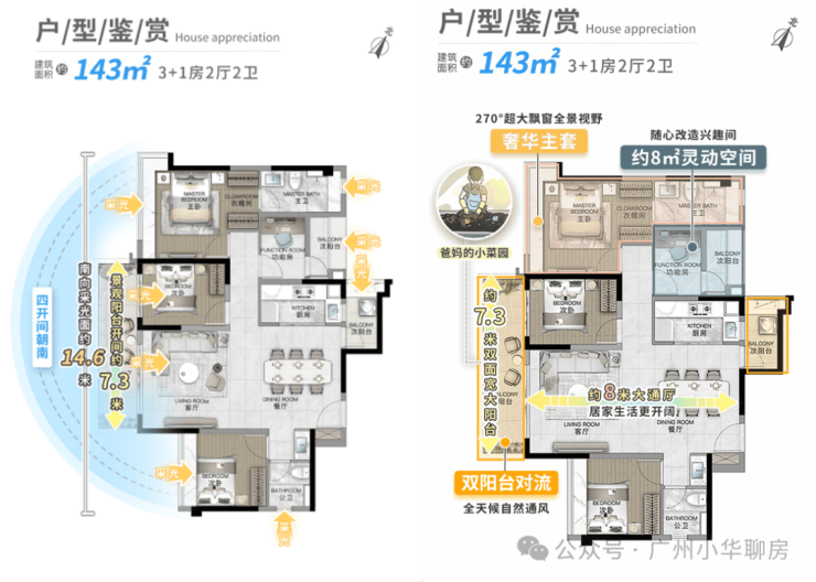 l双面景观阳台+满飘窗,约6.8m 面宽超大阳台,景观资源最大化利用