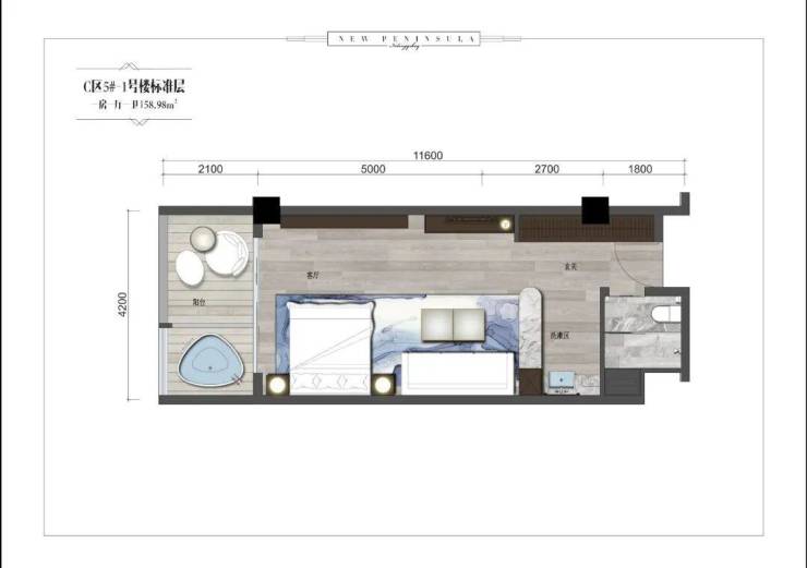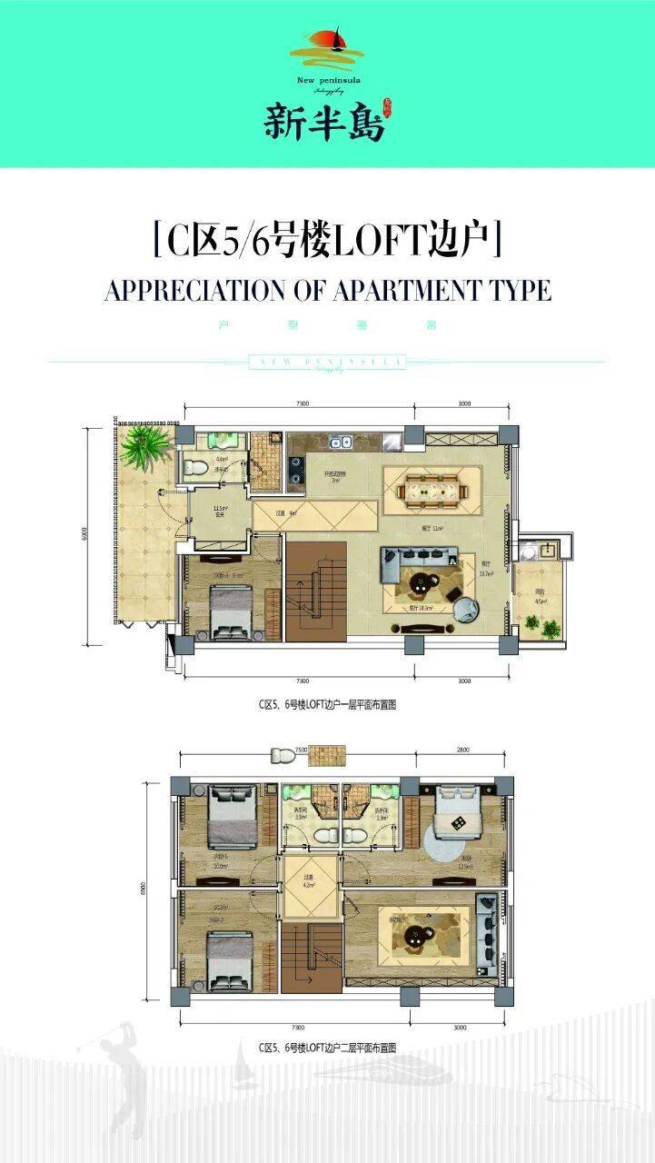 C区5、6号楼LOFT边户户型图:建筑面积98-102平米,使用面积180平米。总价:300万-340万