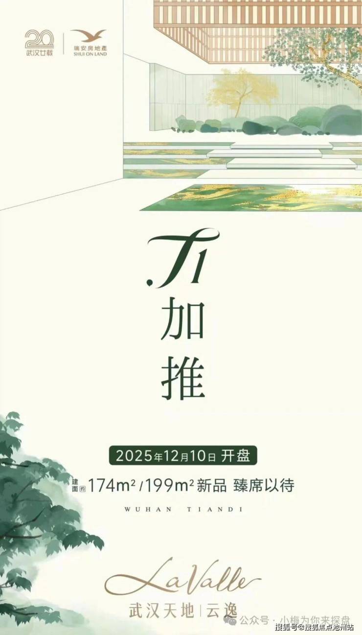 武汉天地云逸 1 号楼12月10号加推了,面积段为 174、199 平方米,备案价相比首开的2、3号楼大约有10%的上浮。3.75w单价起,总价640 万左右可以上车。但是楼层越高价格越贵,因为高区是可以看江的。如果对项目感兴趣可以联系小梅,具体项目信息小梅可以一对一沟通。
