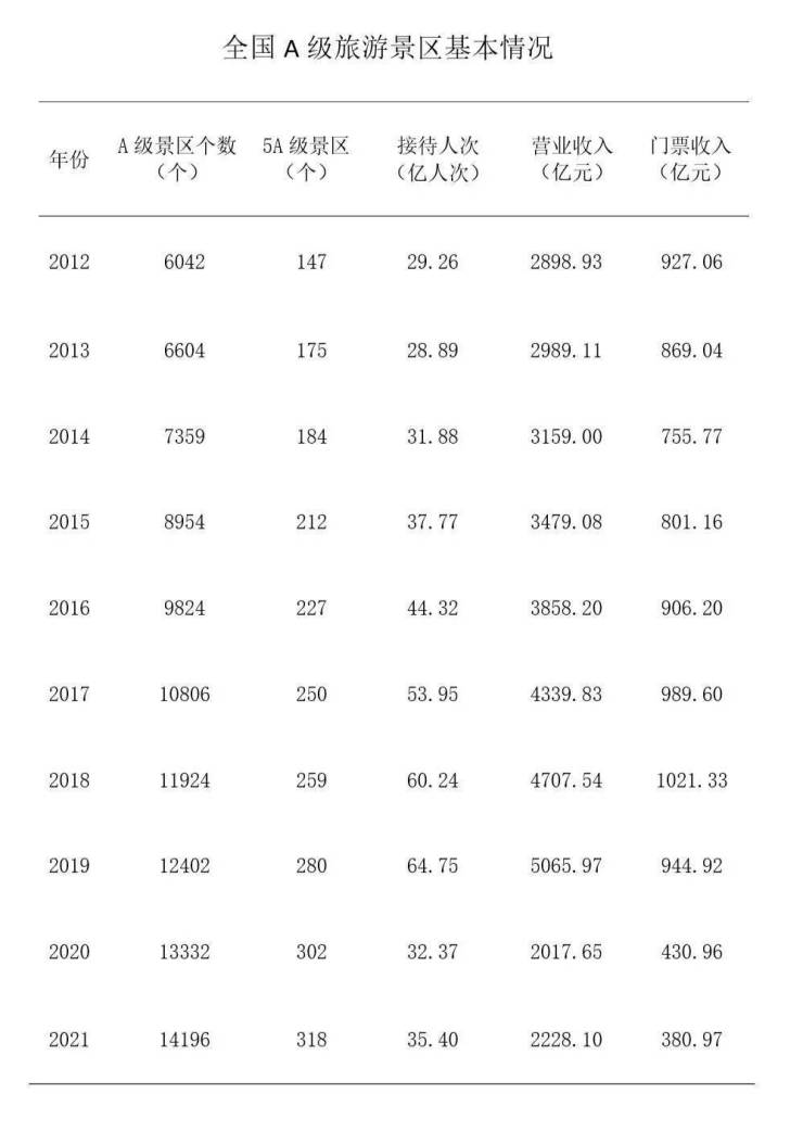 文旅部:2021年全国A级旅游景区接待人次达35.4亿