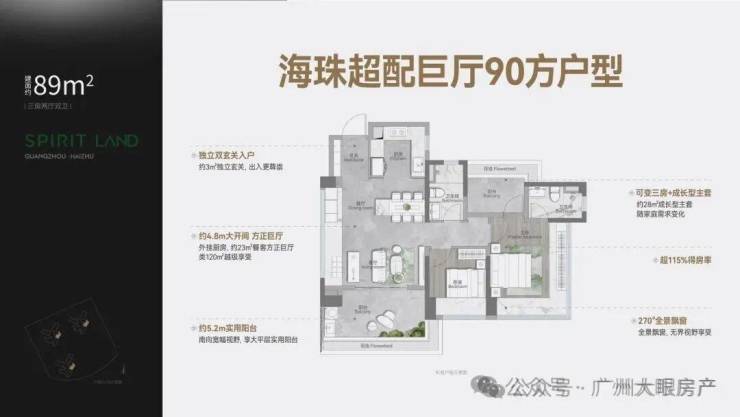约28㎡成长型大主套 灵动可变三房 ,270°全景飘窗 无限广角