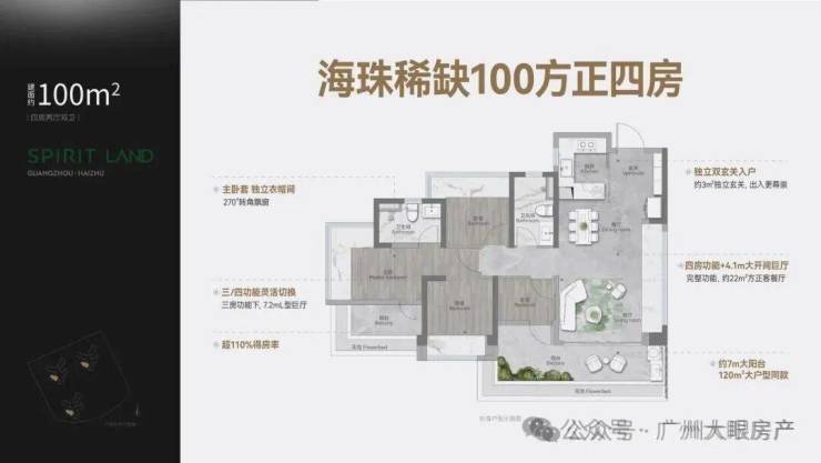 海珠唯一 100方内正四房,LDKG+X一体化 4.1m方正巨厅