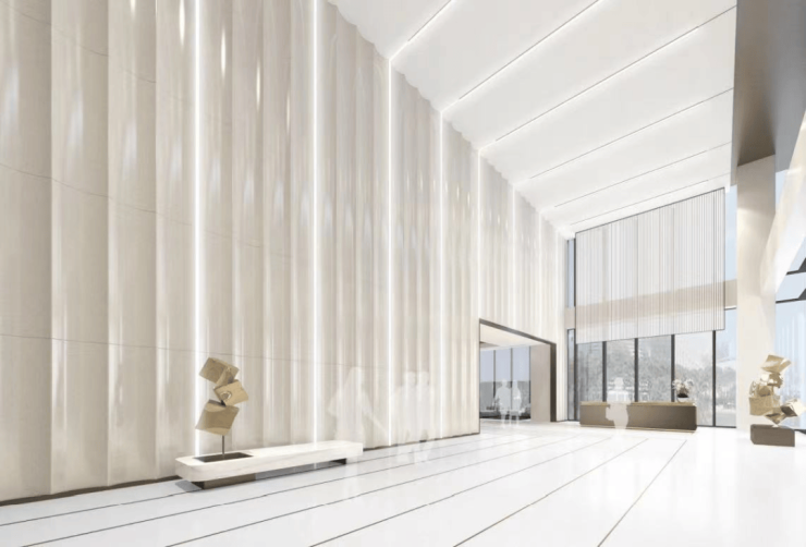 入户大堂局部挑高约11.15米(层高),轩昂宽敞空间,透射出总部企业的非凡气质。