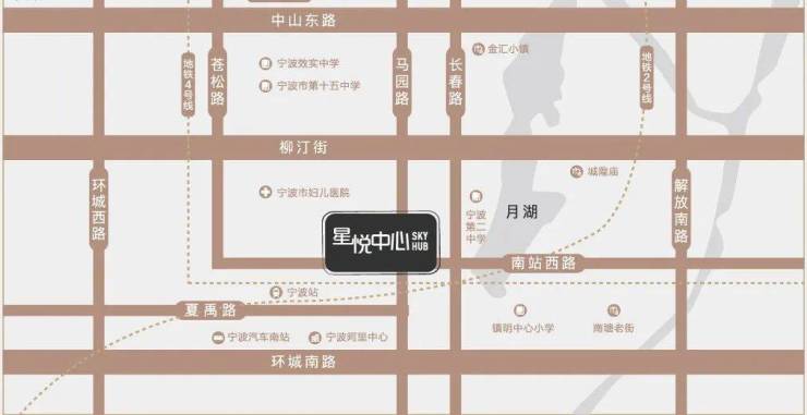 星悦中心位于宁波海曙区核心城区,是宁波最具文化底蕴之地,和宁波最早的城市公园、目前已经升级为国家5A景区的月湖公园直线距离仅约400米。