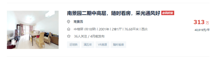 还有周边的南景园,76平的户型,挂牌价格也在300-400万之间。