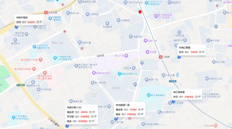 医院方面,项目两公里内就有5所三甲医院,比如广州医科大学附属第二医院、南方珠江大学医科医院等等。