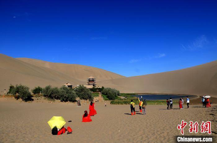 敦煌鸣沙山月牙泉景区在落实好常态化疫情防控措施的前提下,全力做好游客接待服务工作。据了解,8月16日,景区游客接待人数已超过600人次。