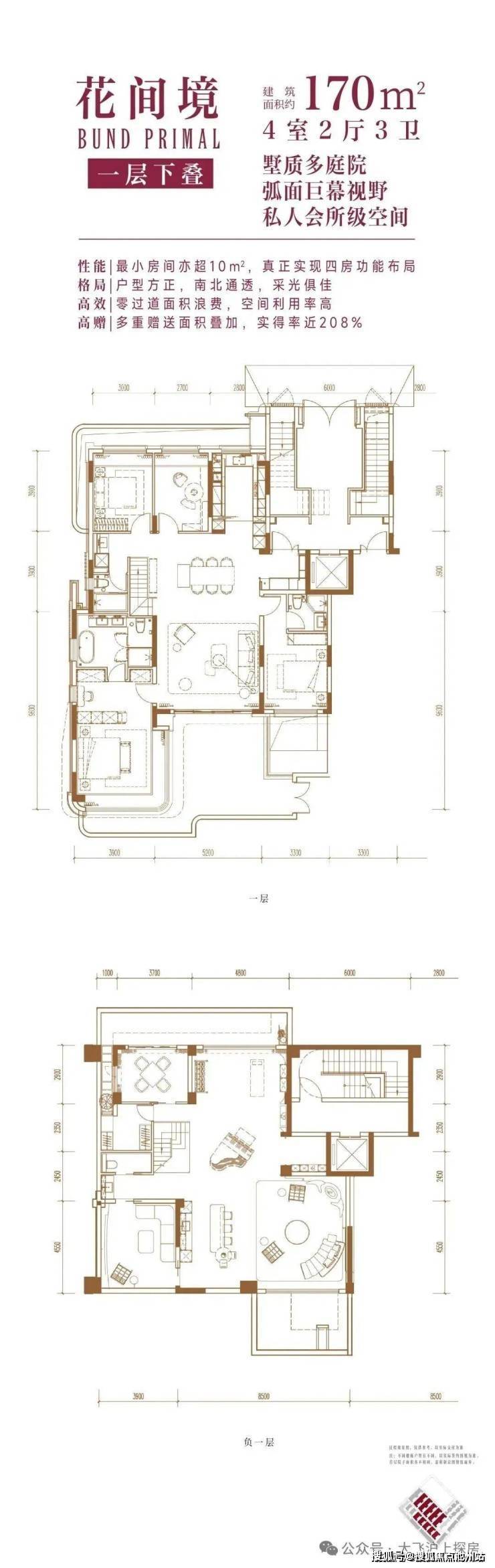 第二、层高也高于传统常规洋房产品,3.3-3.6m层高对标别墅产品层高。