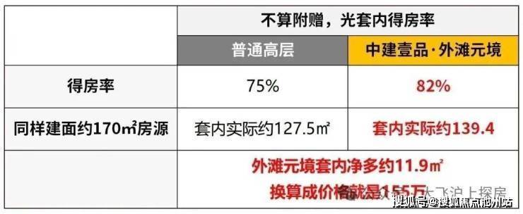 正常的新房,其套内的得房率最高也就是75%。而中建壹品·外滩元境的得房率足足有约82%。