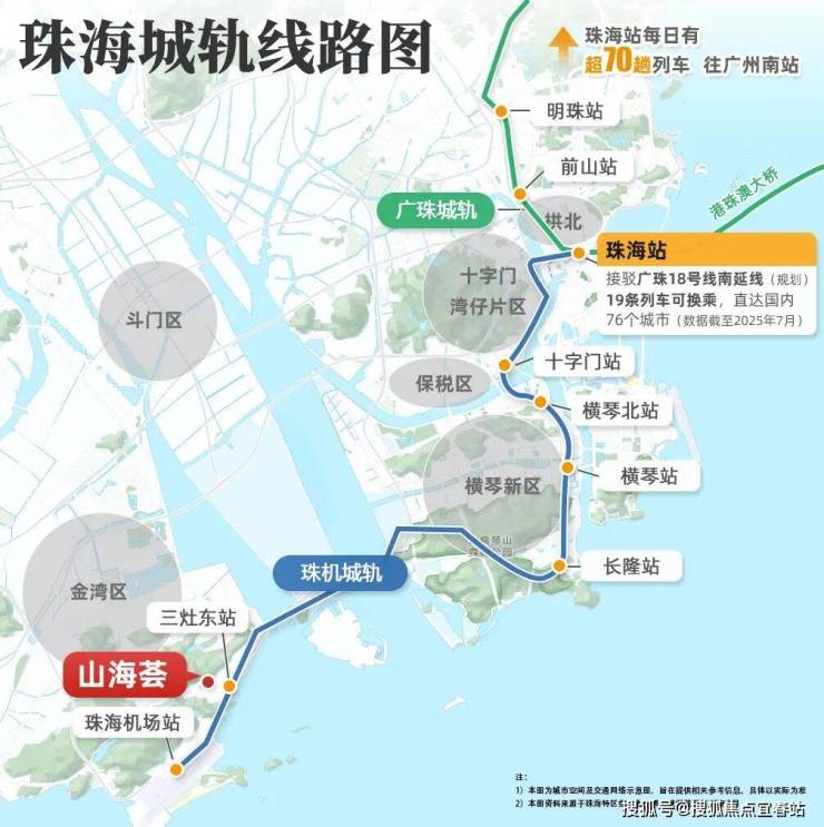 山海荟旁即是珠机城轨三灶东站,步行即可搭乘城轨,轻松抵达珠海机场站;或直达横琴站,经横琴口岸通关后即可衔接澳门轻轨;甚至通过便捷的换乘,直达广州南站,速通全国。