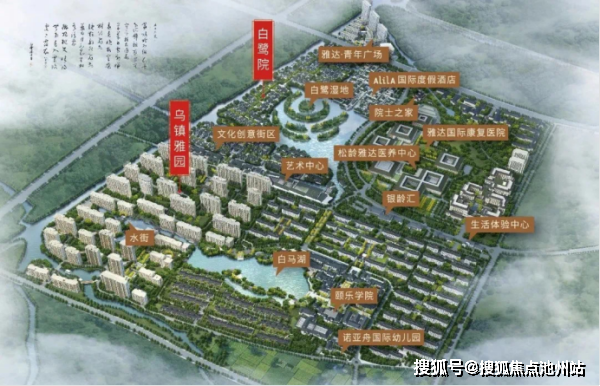 教育配套:诺亚舟双语幼儿园,乌镇中心幼儿园,植才小学,乌镇中学三、雅达国际健康产业园区 8年沉淀 全臻熟颐养天地 乌镇璟园坐拥1500亩雅达国际健康产业园,包含内容有:1颐乐学院:占地150亩,总建筑面积约3.5万平米,可同时容纳3000人上课活动, 开展适合老年人身心健康的各类活动。