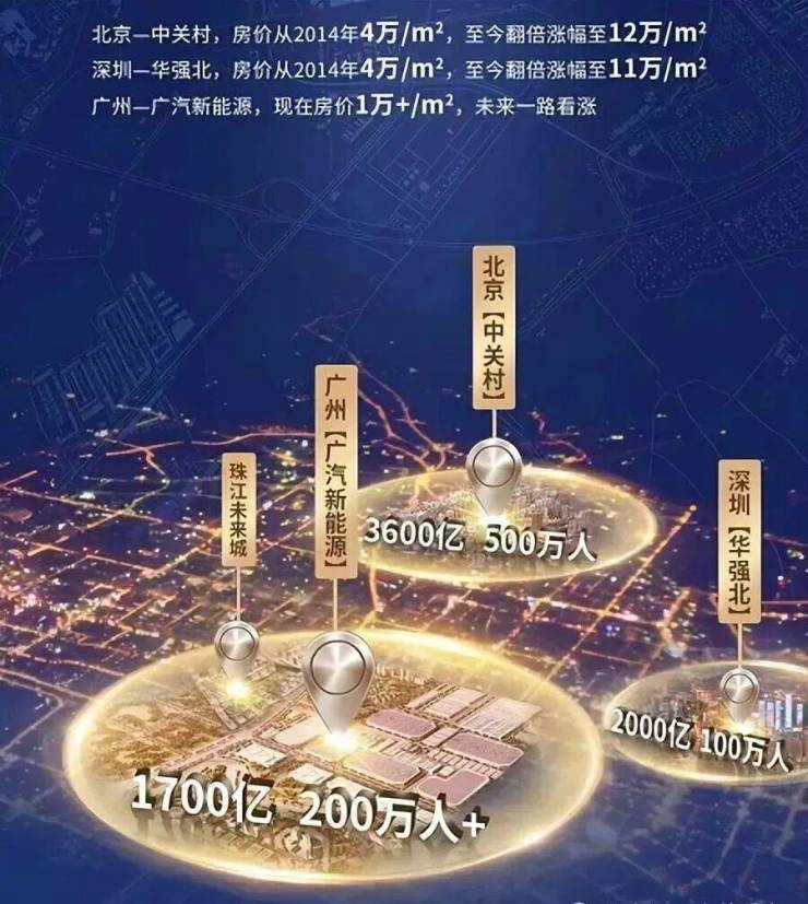 北京—中关村,年交易额3600亿,高新技术企业4000多家,日均客流量500万人次,房价从2014年4万/㎡,至今翻倍涨幅至12万/㎡