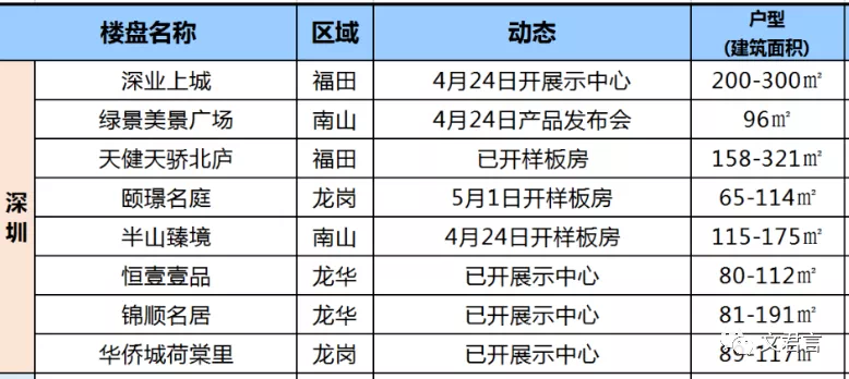 深业上城、绿景美景广场、颐璟名庭、半山臻境、华侨城荷棠里、锦顺名居等新盘皆有较新动态,多数为开放展示中心和样板房,开盘时间不难推测集中在5月或6、7月了。