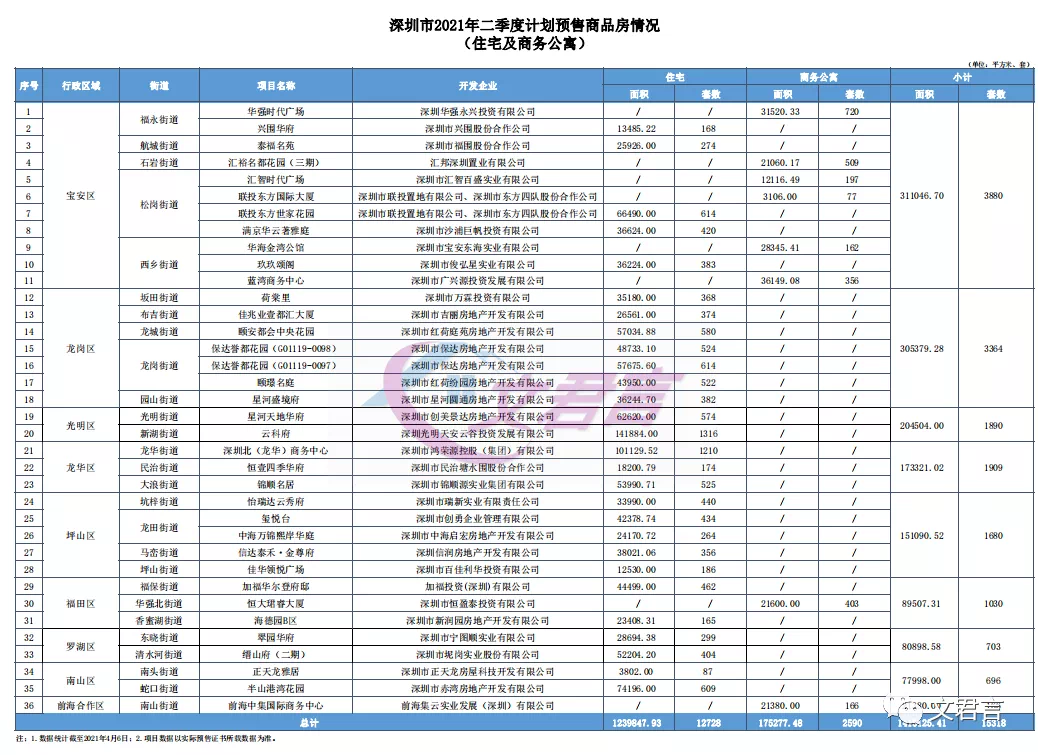 近日,深圳住建局发布了《深圳市2021年二季度商品住宅和商务公寓房源信息情况》,二季度计划入市的商品住宅及商务公寓项目达到了36个,预计将提供房源15318套。