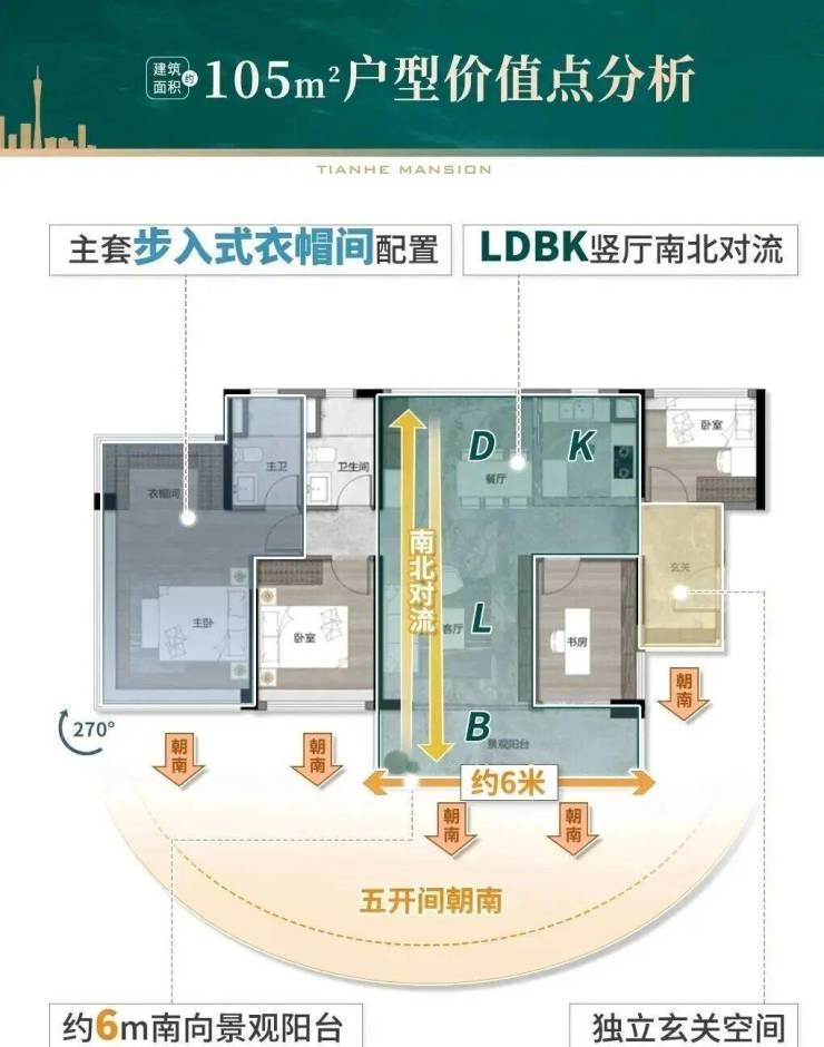 主套的L型大飘窗、约5米宽的大阳台、三卧室均为朝南向、U型大厨房......通通安排上。同样的预算,别说天河,去其他区域都未必能买到这个全面的产品。
