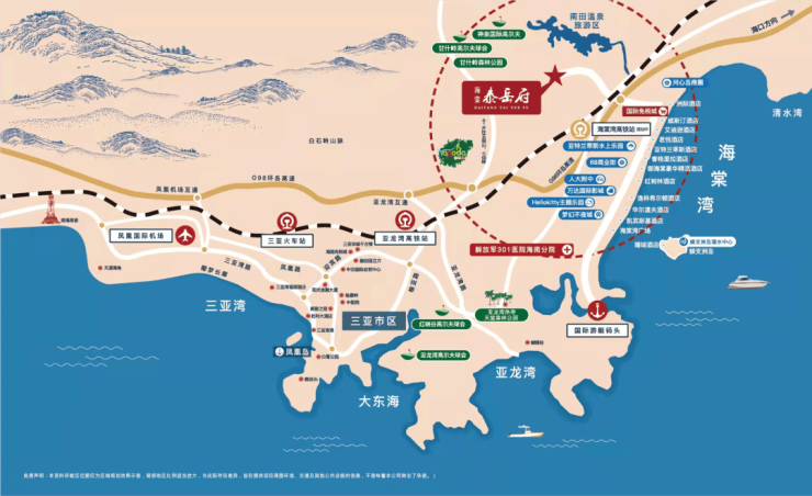 三亚,北纬18°的中国纬度,被誉为“东方夏威夷”,全年平均气温25.5℃,空气健康指数常年位居榜首。海棠·泰岳府选址海棠湾南田温泉旅游度假区,是少有的温泉入户康养度假雅居,泡池现房,匠心精铸。