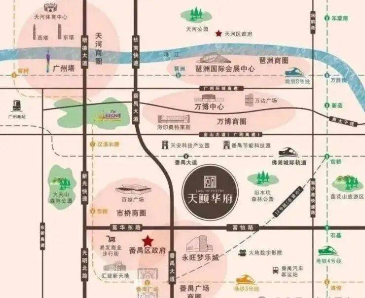 ① 地处番禺广场板块,四地铁交汇的广州枢纽级交通中心(3 号线、18 号线、22 号线、17 号线)