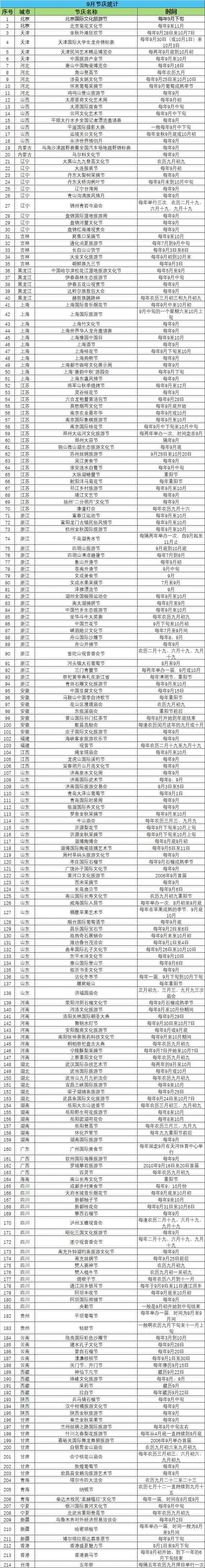 据统计,9月全国有约214个节庆项目展开,其中包含江苏溱潼灯会、广西百灵节等传统节庆,以及河南河洛文化旅游节、山东青岛国际时装周等现代节庆。以下是9月全国各地具体节庆信息。