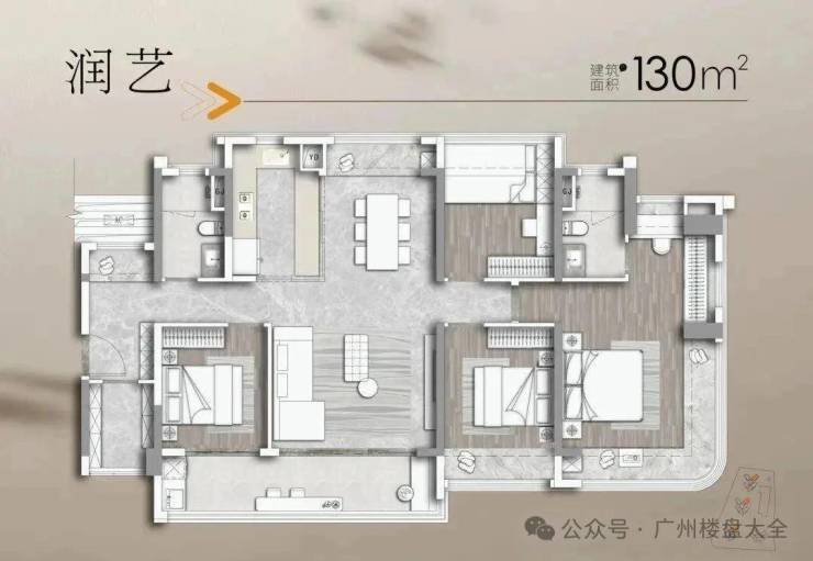 建面130平四房两卫,入户即见对景式玄关,可做景观装饰,也可做玄关柜收纳,该户型LDKB一体化设计,客厅开间超4米,可打通客厅旁的次卧做成7.2米大方厅,主卧配270度全景舱,可双面屏观景,总价665万起。