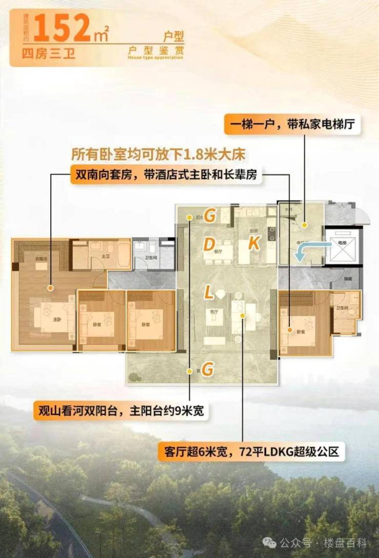 面积户型:72-152㎡(三四房)精装修