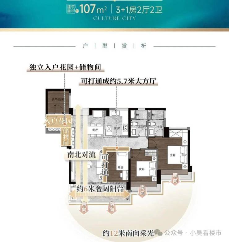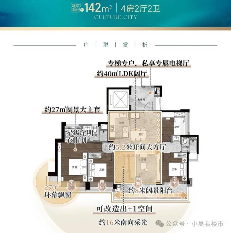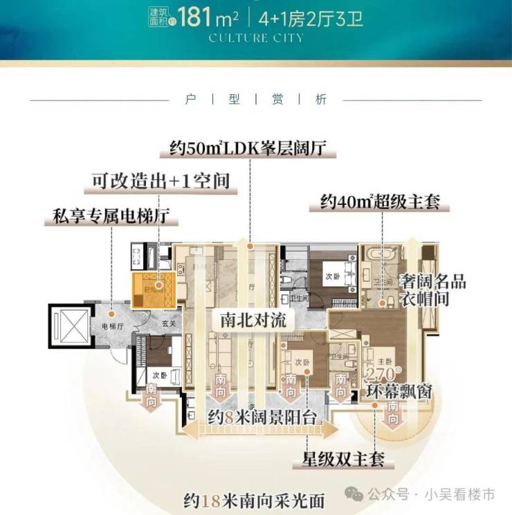 建面约143-181㎡户型为3梯3户设计(专梯专户)。
