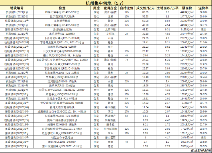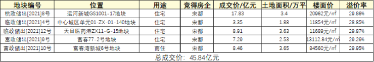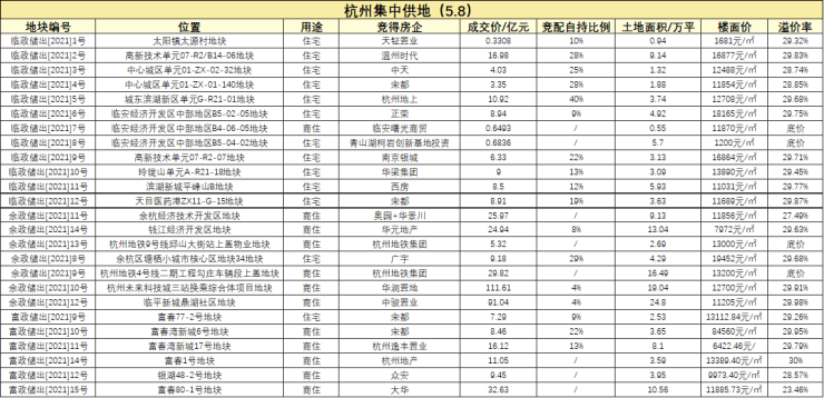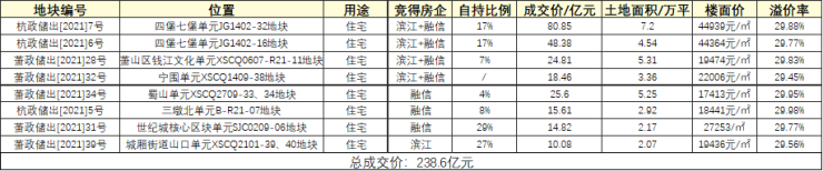附杭州两日土拍汇总表: