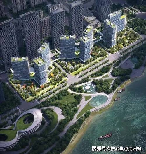 建筑设计:由line+建筑事务所设计,灵感源自宋代马远的《万顷长江》,将水纹意象转译为建筑立面律动语言,八座板式塔楼通过体块分段和前后推拉,形成有层次感的天际线。