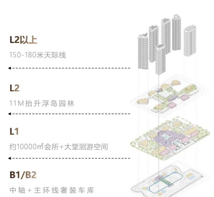 L1,为约10000平会所+大堂洄游空间,满足业主接待-社交-娱乐-康体等一系列需求。