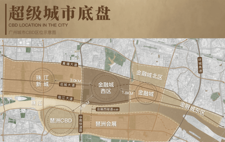 在其东、西、南向,分别就是珠金琶三大CBD。