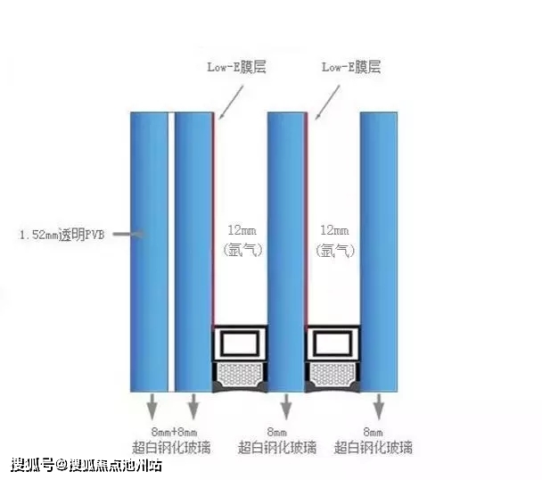 因为它采用了四层双腔Low-E玻璃,每层的玻璃厚度达到8毫米,什么概念?在上海双层都还未普及,豪宅也鲜有用到三层的。