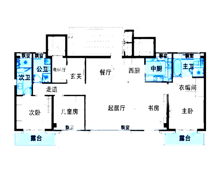 四层洋房户型:建面约170㎡