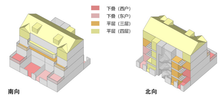 具体来看下项目设计方案。地块拟建6栋4F叠墅、13栋2-3F合院,以及1栋3F保障
