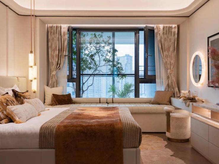 卧室则采用海派鱼骨拼花地板,精致美观,更显主人艺术品味。
