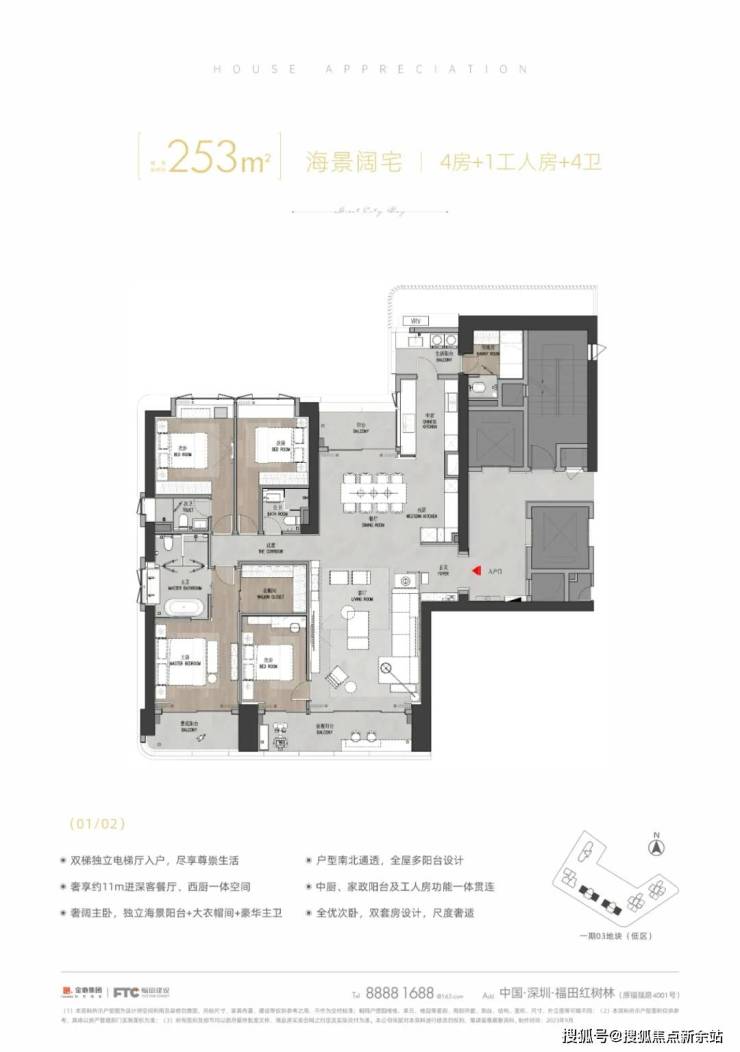 所有建面约250平以上的户型全都是南北通透的方正大户型,层高也都设置为约3.3-3.5米超大层高,绝对的豪宅打造,17层以上就可以看到比较明显的海景景观,2000-3000万以上的改善客户可以重点考虑。